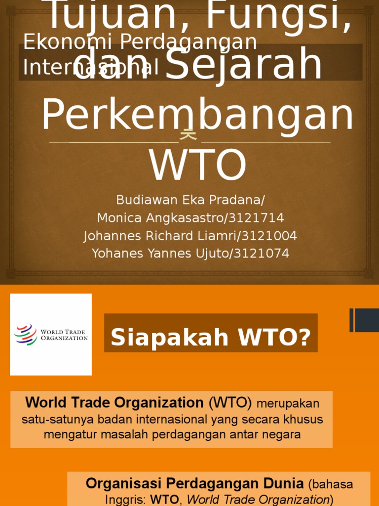 Sejarah World Trade Organization Ppt Download from slideplayer.info Latar belakang wto dan tujuannya. We did not find results for: Check spelling or type a new query. Maybe you would like to learn more about one of these?