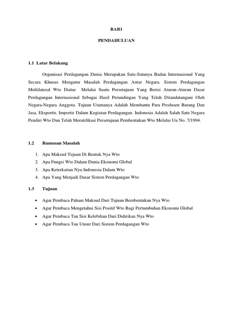 Check spelling or type a new query. Latar belakang wto dan tujuannya. We did not find results for: Maybe you would like to learn more about one of these?